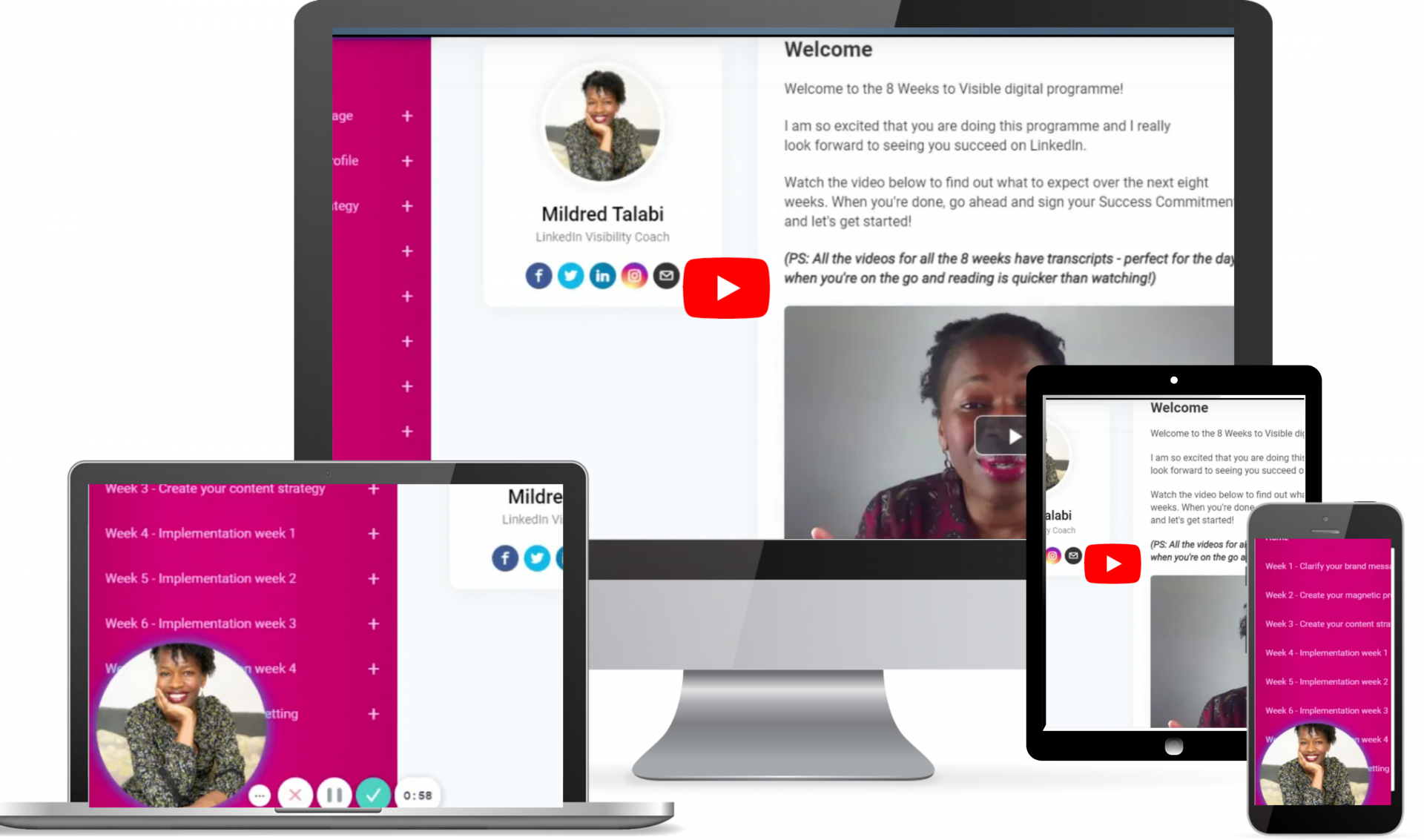 8 Weeks to Visible is designed to help you get up to speed with the four pillars of LinkedIn success - Profile, Content, Engagement and Audience - so you don't have to stumble your way around LinkedIn and learn by trial and error over a longer period of time than necessary. With this programme, you don't just learn what to do, you learn why and how to do it so you can succeed in reaching your goal of mastering LinkedIn easier and faster.